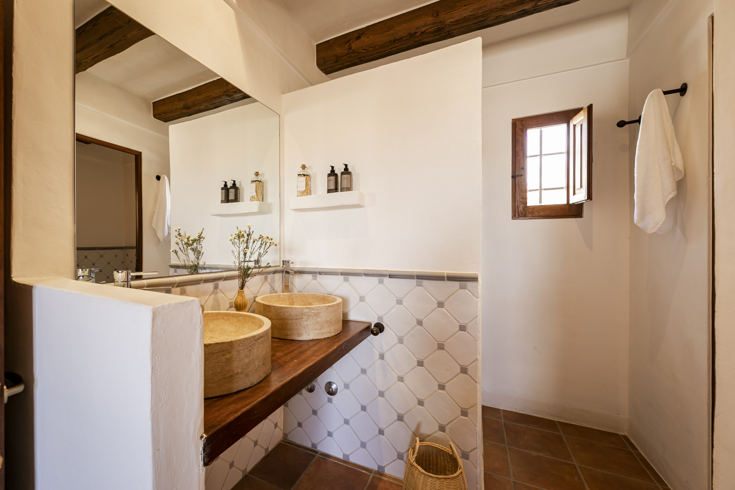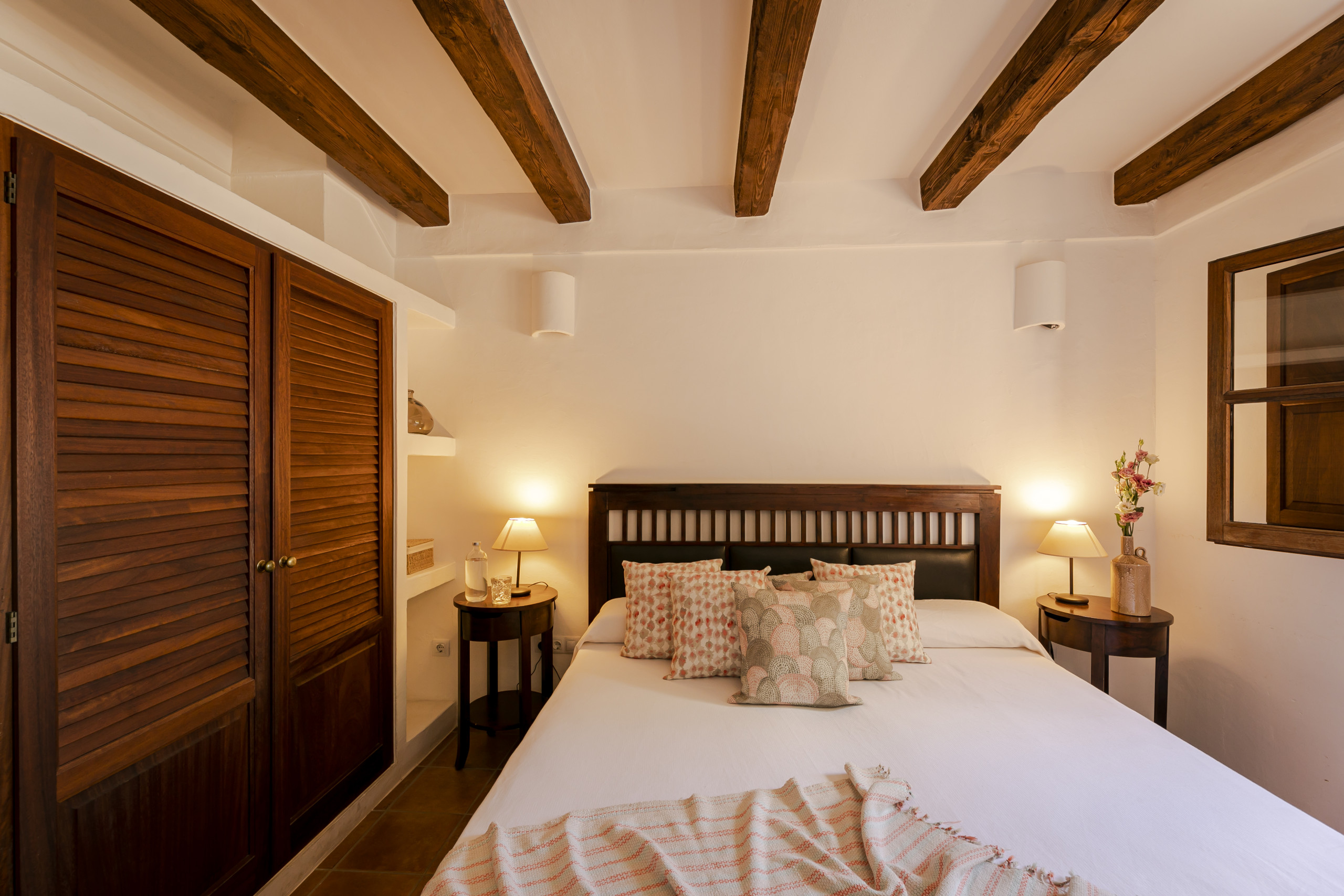 Die Villa verfügt über fünf gut ausgestattete Schlafzimmer mit flexiblen Schlafmöglichkeiten, darunter ein Queensize-Bett, ein Doppelschlafsofa und acht Einzelbetten. Vier moderne Badezimmer mit Duschen sorgen für ausreichend Platz und Privatsphäre für alle Gäste. Die gesamte Unterkunft ist klimatisiert und bietet Komfort während der warmen Balearen-Sommer.