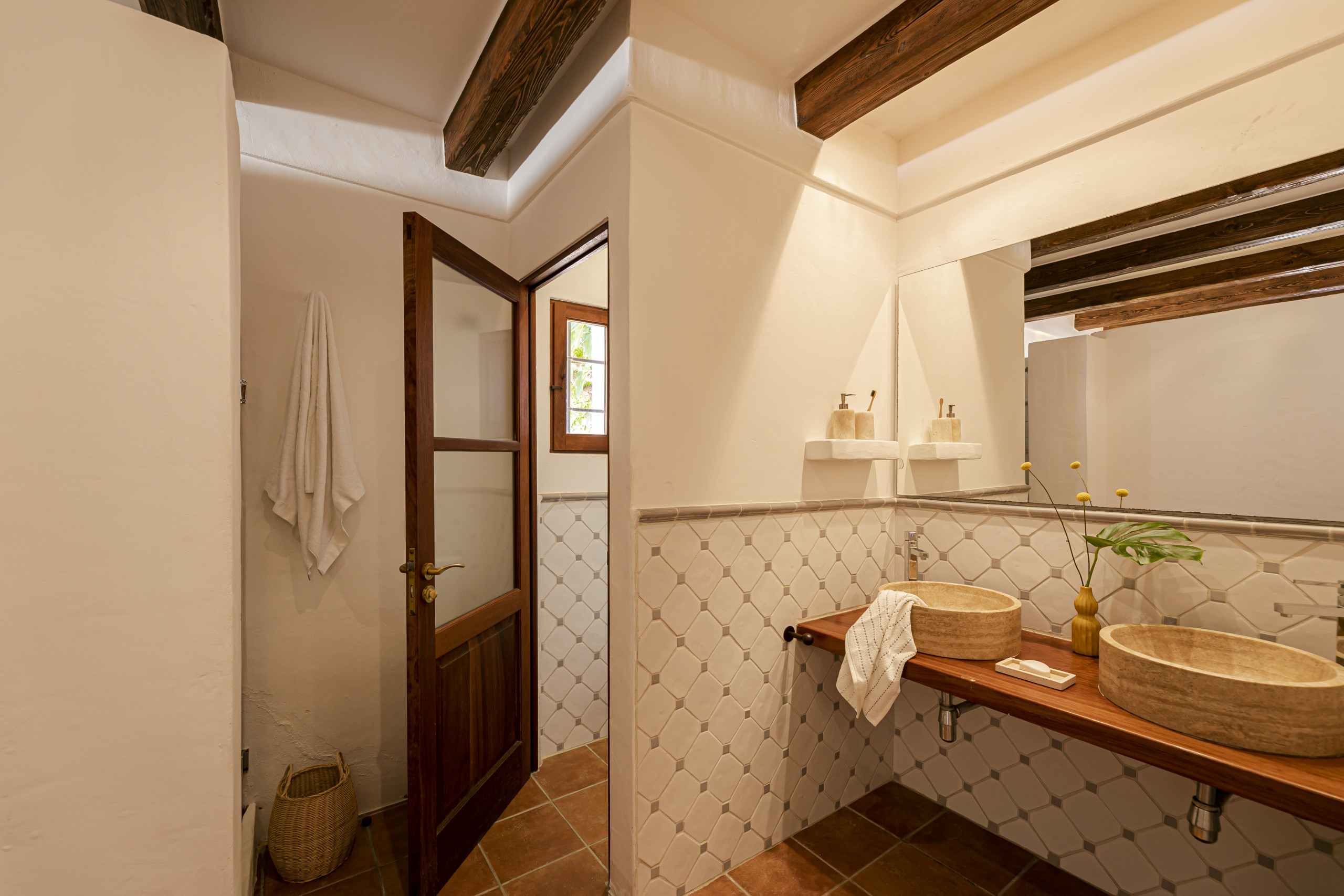 Entdecken Sie Can Noves, eine geräumige und gemütliche 5-Schlafzimmer-Villa, die im ländlichen Herzen von Formentera liegt und ideal für Familien und Gruppen ist, die eine ruhige mediterrane Auszeit suchen. Diese großzügige 220 m² große Immobilie bietet Platz für bis zu 12 Gäste und vereint Komfort und authentisches Inselleben.
