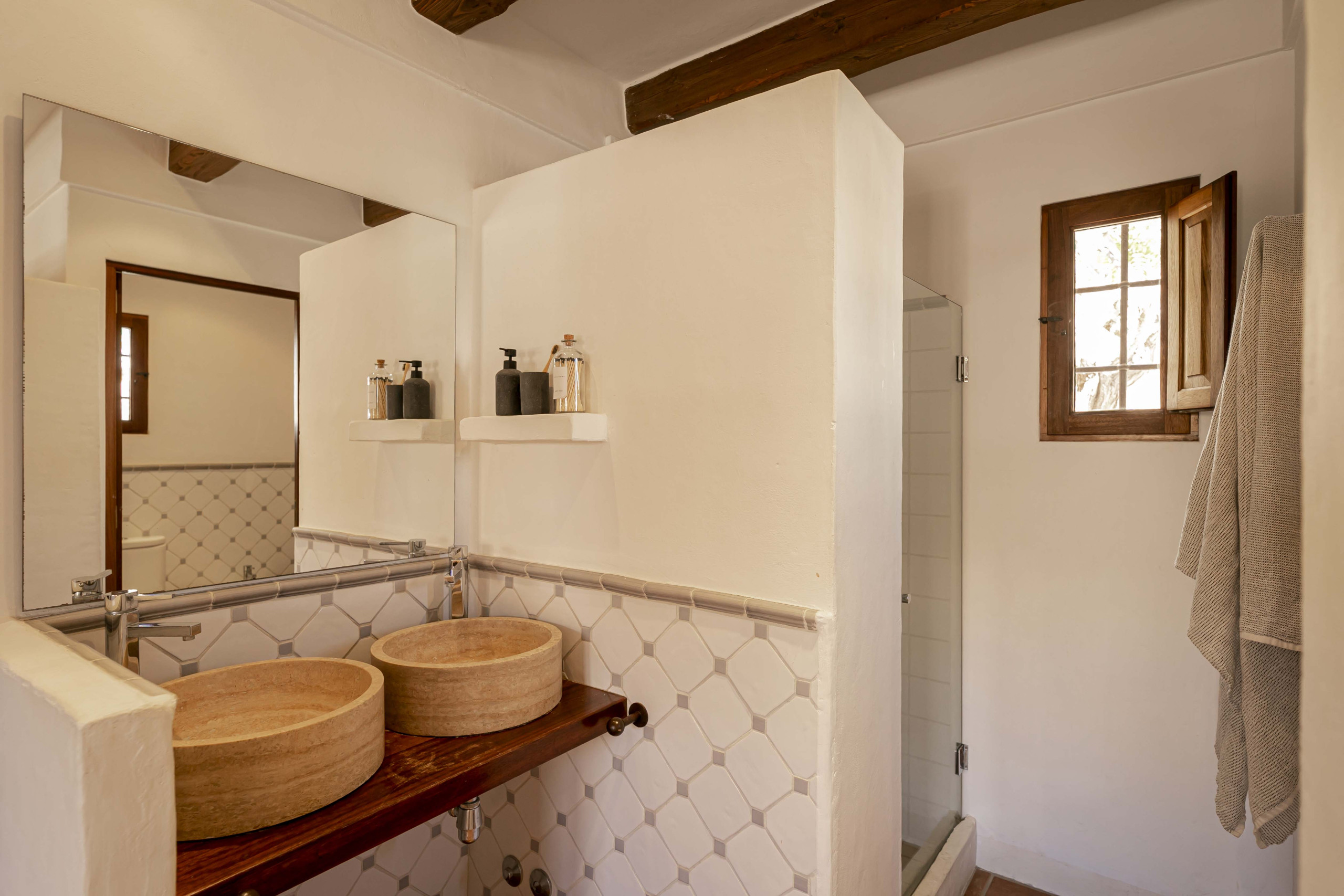 Esci fuori nel tuo privato giardino di 600 m². Goditi lunghi pranzi sulla terrazza di 30 m², accendi il barbecue e rilassati mentre i bambini giocano in sicurezza nel grande giardino. Situato in un tranquillo contesto rurale a soli 300 m dalle boutique e dai caffè di Sant Francesc e a 6 km dalle stupende acque turchesi di Cala Saona, le migliori spiagge dell'isola sono tutte facilmente raggiungibili.